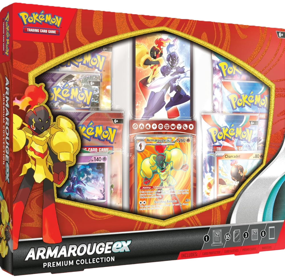 Ignite the battlefield with blazing brilliance in the Pokémon TCG: Armarouge ex Box! This fiery warrior channels the arcane power of ancient armor and psychic flame, emerging with unstoppable intensity and mystical precision.