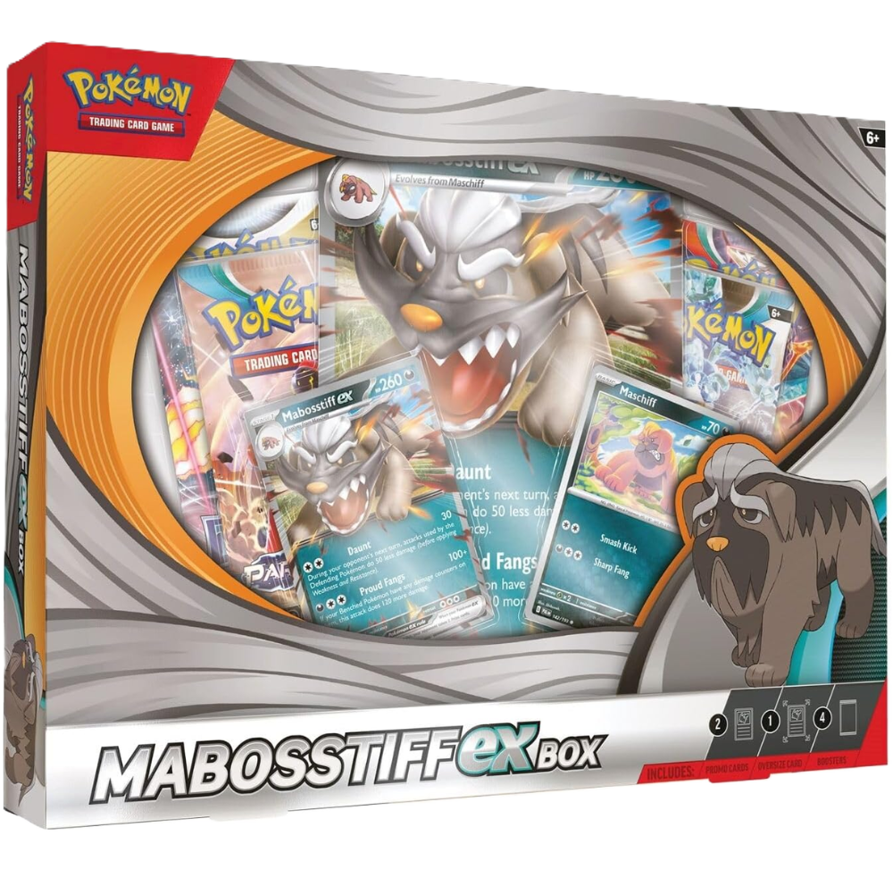 Inside this loyal-themed collection, you’ll find a foil promo card of Mabosstiff ex, along with an oversized version that showcases its imposing presence. Plus, with 4 booster packs included, you’ll have the tools to build a deck as tough and tactical as this steadfast partner.