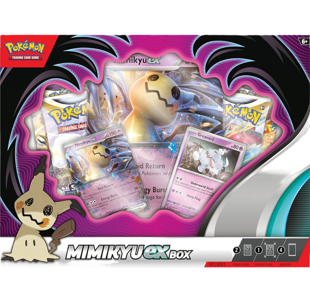 With spectral energy and playful trickery, Mimikyu ex strikes from beyond with a brand-new foil promo card that brings its ghostly presence to life. You’ll also uncover a foil Greavard card and 4 booster packs to boost your deck with new surprises from the Pokémon TCG.