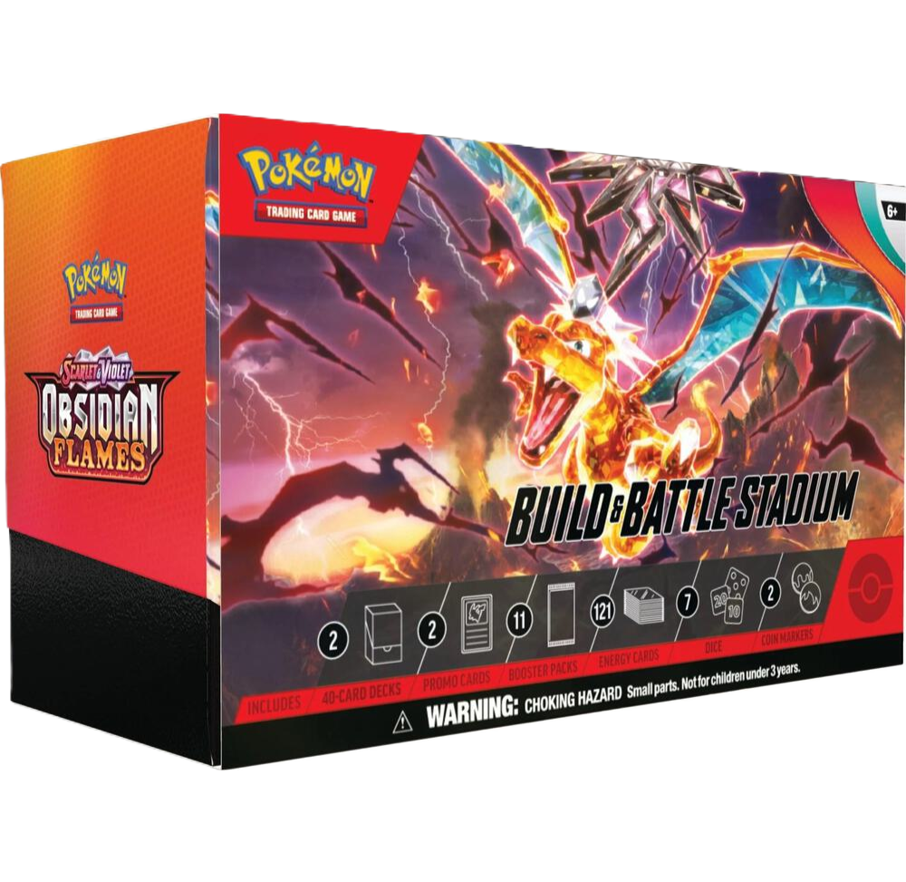 With powerful cards like Charizard ex harnessing the might of the Tera type, and intense Pokémon ready to burn through the competition, the Obsidian Flames Build & Battle Stadium is your launchpad for victory. Fan the flames, build your deck, and rise from the ashes stronger than ever! 🔥🃏⚡🌋
